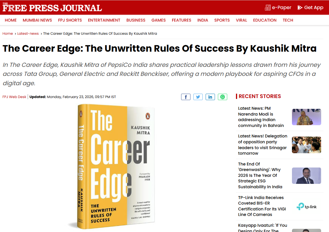 Kaushik Mitra is the Vice President & CFO at PepsiCo India. With over 30 years of experience, he was in multiple roles across several industries and companies such as RPG group, Tata group, GE, Reckitt Benckiser, and PepsiCo.